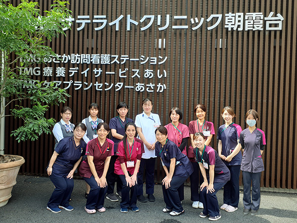 埼玉県朝霞市にある、TMGサテライトクリニック朝霞台・TMGあさか医療センター連携の訪問看護ステーションスタッフ一同です!「ご利用者様は、私達の家族」をモットーに、訪問看護に伺っております。